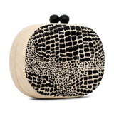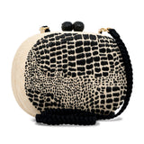 • Hand embroidered crocodile print on Tinalak fabric clutch with snakeskin closure