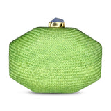 Jasmine Buntal Clutch - Kelly Green with Stone Closure